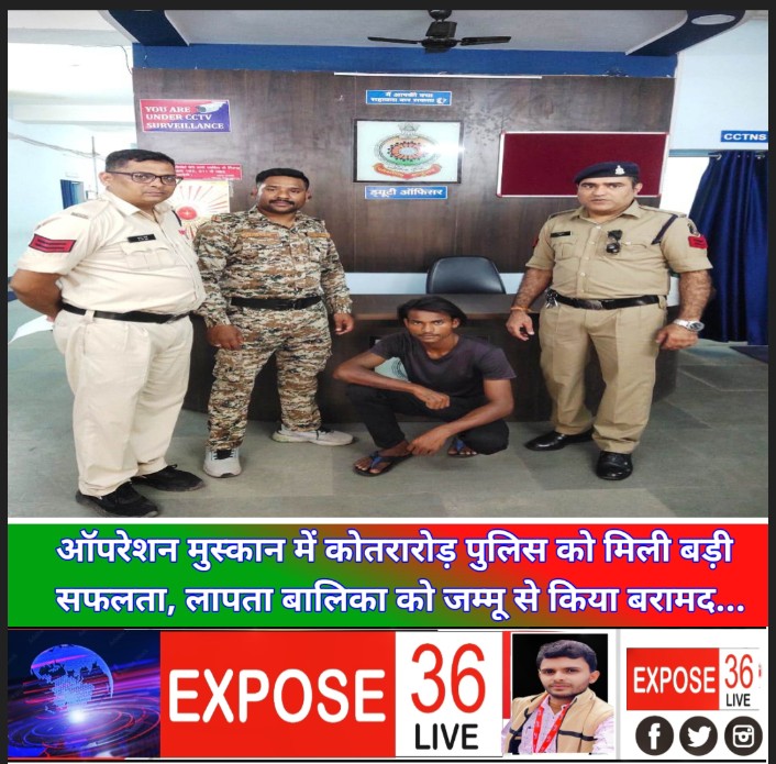 *22 सितंबर, रायगढ़* । पुलिस अधीक्षक श्री दिव्यांग कुमार पटेल द्वारा जिले में ऑपरेशन मुस्कान के अंतर्गत थाना प्रभारियों को लापता व्यक्तियों, विशेष रूप से बच्चों और महिलाओं की त्वरित खोजबीन करने का निर्देश दिया गया है। इसी क्रम में कोतरारोड़ पुलिस ने एक महत्वपूर्ण सफलता हासिल की है। डीएसपी श्री अखिलेश कौशिक के मार्गदर्शन और निरीक्षक त्रिनाथ त्रिपाठी के नेतृत्व में कोतरारोड़ पुलिस टीम ने जम्मू के अरनिया क्षेत्र से एक लापता बालिका को सुरक्षित बरामद कर आरोपी युवक को गिरफ्तार किया है।