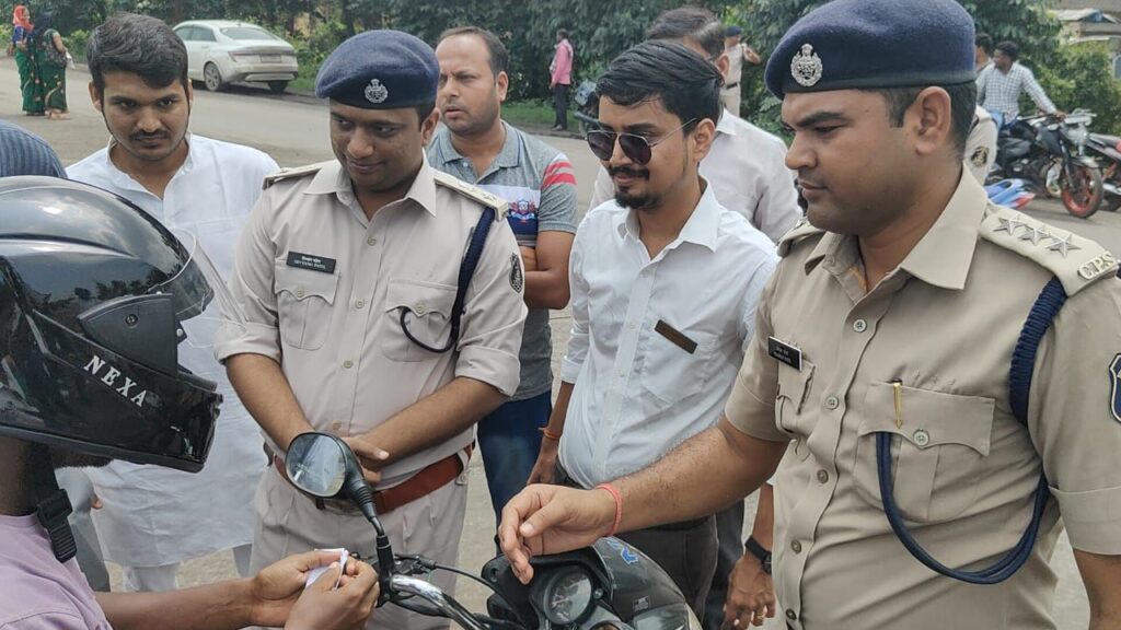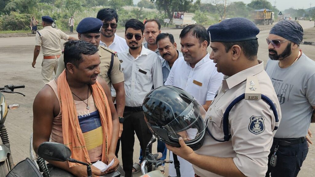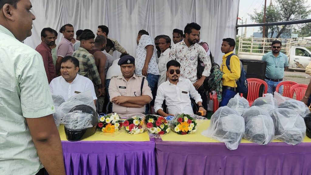 रायगढ़ जिला पुलिस अधीक्षक दिव्यांग पटेल पहुंचे खरसिया हेल्पिंग हैंड्स क्लब फाउंडेशन एवं रायगढ़ पुलिस का सड़क सुरक्षा अभियान के तहत हेलमेट वितरण रानीसागर चौक पर….