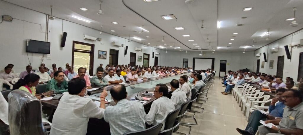 रायगढ़, 23 सितम्बर 2024/ कलेक्टर श्री कार्तिकेया गोयल के निर्देशन में जिला शिक्षा अधिकारी डॉ. के.वी.राव की उपस्थिति में हाई स्कूल एवं हायर सेकेंडरी स्कूलों के प्राचार्यो की विभागीय समीक्षा बैठक सृजन सभा कक्ष में आयोजित हुई। सर्वप्रथम वर्ष 2023-24 की परीक्षा में कक्षा 10 वीं एवं कक्षा 12 वीं में शत-प्रतिशत परिणाम वाले स्कूलों के प्राचार्यो को बधाई दी गई। सभी प्राचार्यो को नवीन शिक्षा सत्र 2024-25 में कक्षा 10 वी में न्यूनतम 80 प्रतिशत एवं कक्षा 12 वी में 90 प्रतिशत न्यूनतम परीक्षा परिणाम का लक्ष्य रखने को कहा गया। साथ ही कक्षा 01 से 12 वीं तक अध्ययनरत शत-प्रतिशत पात्र सभी छात्रों का जाति प्रमाण-पत्र दो सप्ताह में पूर्ण करने को कहा गया।