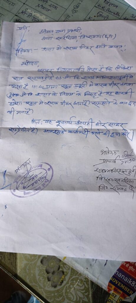 खरसिया शासकीय उच्च माध्यमिक विद्यालय हालाहुली स्कूल के एक ऐसे शिक्षक जो हमेशा शराब के धुन में रहते हैं यह ऐसे शराबी शिक्षक की मामला सामने आए हैं कि अपने हरकतों से बज नहीं आ रहे हैं जिसको लेकर हालाहुली शासकीय उच्च माध्यमिक विद्यालय के प्राचार्य ने पुलिस थाना में शराबी शिक्षक के नाम पर शिकायत दर्ज कराई है प्राचार्य का कहना है शिक्षक लोकेश सिंह राज को कई बार समझाया गया लेकिन वह अपनी हरकतों से बज नहीं आ रहे हैं आय दिन शराब पीकर स्कूल आते हैं और बच्चों को अनबन सन बोलते हैं और सभी स्टॉप को कहीं बड़ी अनहोनी ना हो जाए इसलिए शराबी के क्या भरोसा कब क्या कुछ करते शाला समिति द्वारा पंचनामा कर पुलिस थाना में शिकायत दर कराई गई है