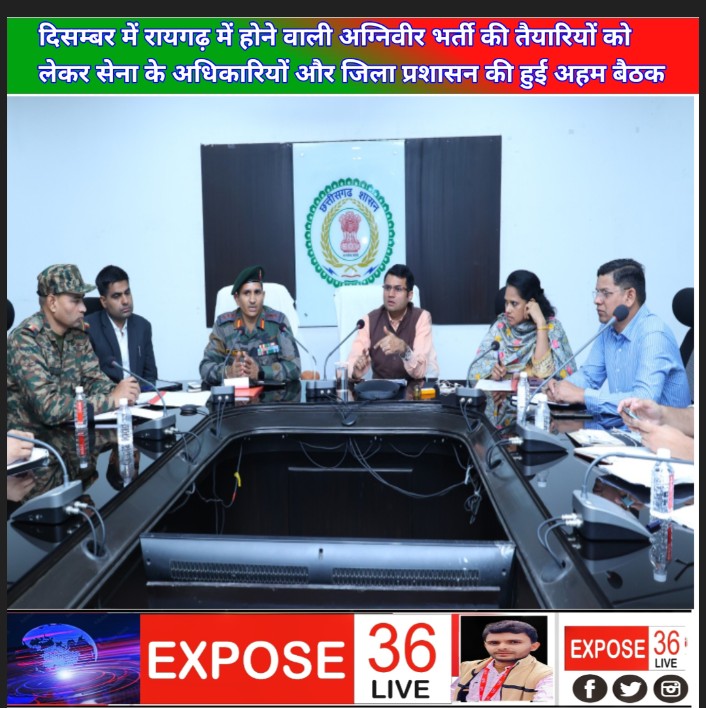 दिसम्बर में रायगढ़ में होने वाली अग्निवीर भर्ती की तैयारियों को लेकर सेना के अधिकारियों और जिला प्रशासन की हुई अहम बैठक
