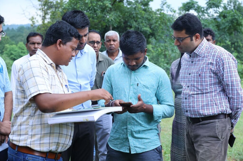 रायगढ़, 28 सितम्बर 2024/ रायगढ़ के लैलूंगा ब्लॉक में इस बार डिजिटल क्रॉप सर्वे चल रहा है। किसानों के खेत के क्षेत्रफल और लगी फसल का अपडेट खेत से सीधे सॉफ्टवेयर में फोटो के साथ अपलोड किया जा रहा है। इस पायलट पायलट प्रोजेक्ट में गांव के शिक्षित युवाओं को सर्वेयर के रूप में शामिल किया गया है। कलेक्टर श्री कार्तिकेया गोयल लैलूंगा के विभिन्न गांवों में पहुंचकर इस डिजिटल क्रॉप सर्वे का मौका मुआयना किया। सीईओ जिला पंचायत श्री जितेन्द्र यादव भी इस दौरान साथ रहे।